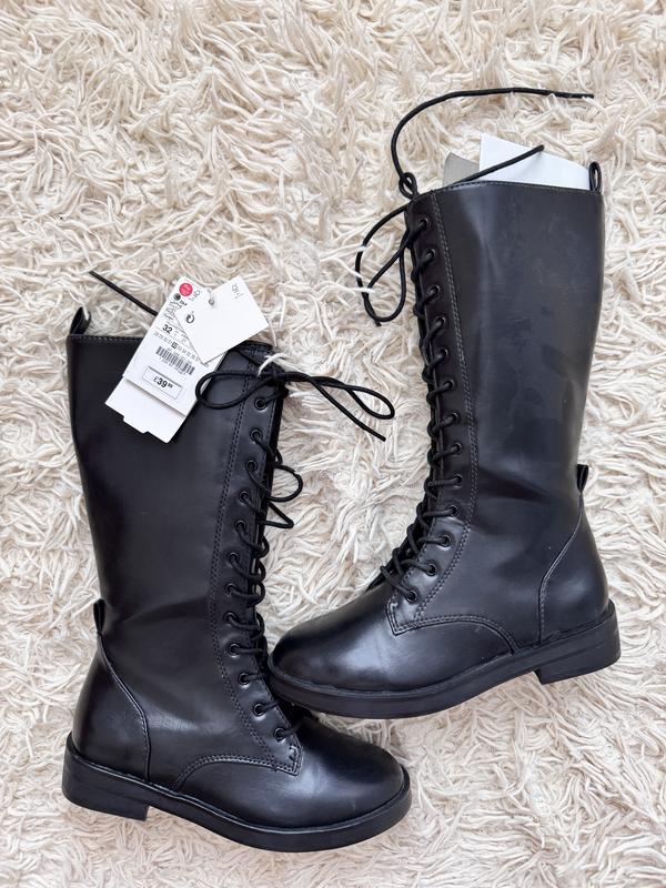 Нові високі дитячі чоботи від Zara. На весну/осінь. Не утеплені. Висота чобота з підошвою 28 см. Устілка 20 см.