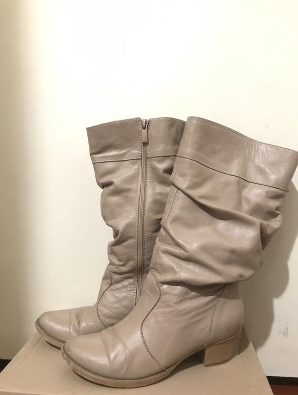 Зимние ботинки бежевого цвета из натуральной кожи и на овчине. Очень удобные и теплые. Состояние удовлетворительно. Замки работают идеально.