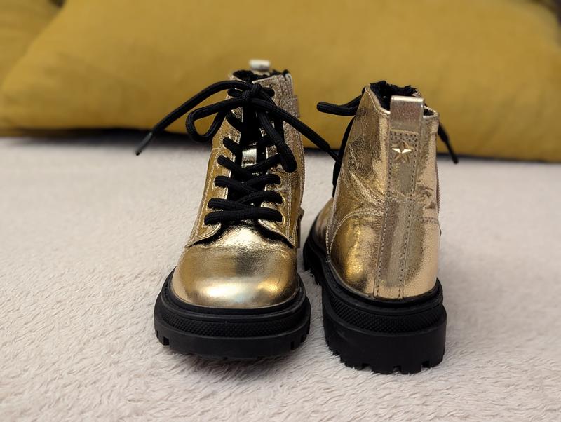 Новенькие сапоги на девочку Next. Блестящие, золотого цвета. в середине немного утеплены, но не стелька. размер 11. Примерно на ножку 18,5 см. За более детальной информацией пишите, Дам ответы на все вопросы. Отпрашиваю по любой почте.