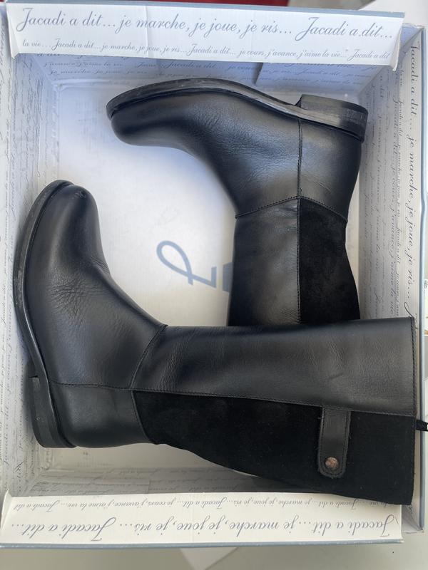 Продам дитячі демісезонні чоботи Jacadi, р.29 (для дівчинки) Стильні чорні чоботи бренду Jacadi, розмір 29. Матеріал: натуральна шкіра та замша. Неутеплені – чудово підходять для демісезонного періоду. Стан відмінний – взували лише двічі на урочисті події. Є одна ледь помітна подряпинка – видно на фото. Придбані у 2021 році, ціна на коробці збережена.