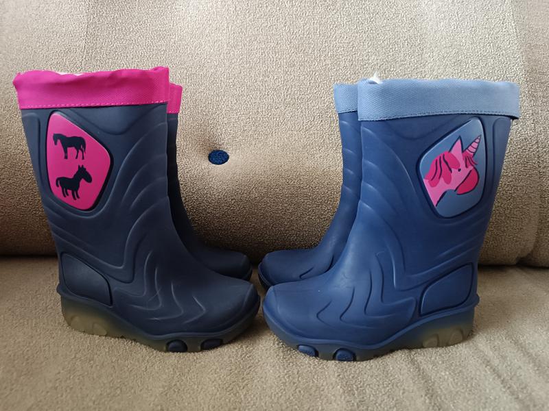 Очень бомбезные резиновые сапоги, яркие, подошва мигает 22/23р и 24/25р, меховой валянок съемный