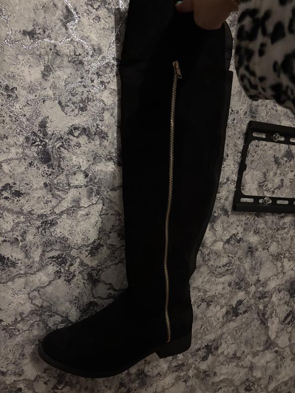Чорні ботфорти на підборі без дефектів. Високі, забезпечать стильний вигляд і комфорт. Підійдуть як для повсякденного використання, так і для вечірнього виходу.стильні та зручні у носінні.