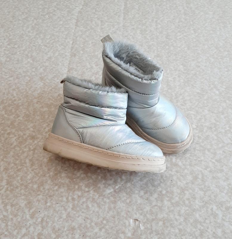 Тепленькие удобные сапожки угги для маленькой принцессы в идеальном состоянии. Верх водонепроницаемый материал, подкладка искусственный мех. Подошва прошита.Следы износа не внушительны. Американский размер 7, по стельке 14,3 см.