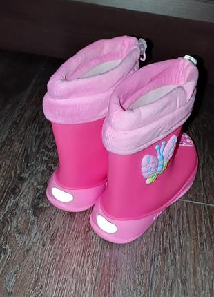 Продам дитячі гумові чоботи. Нові, не пригодилися. 33 розмір, на дівчинку 9-11 років. Всередині з'ємні неопренові утеплені шкарпетки. Зручні й легкі.