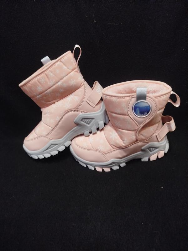 Зимние очень теплые сапожки розового цвета, отлично подойдут в снежную погоду. Длина по стельке 18 см. Есть на качественной резиновой подошве антискользящий протектор, что очень удобно при гололёде. Есть хорошая и удобная застёжка липучка, ребенку самому будет легко обуваться. Модель 6672