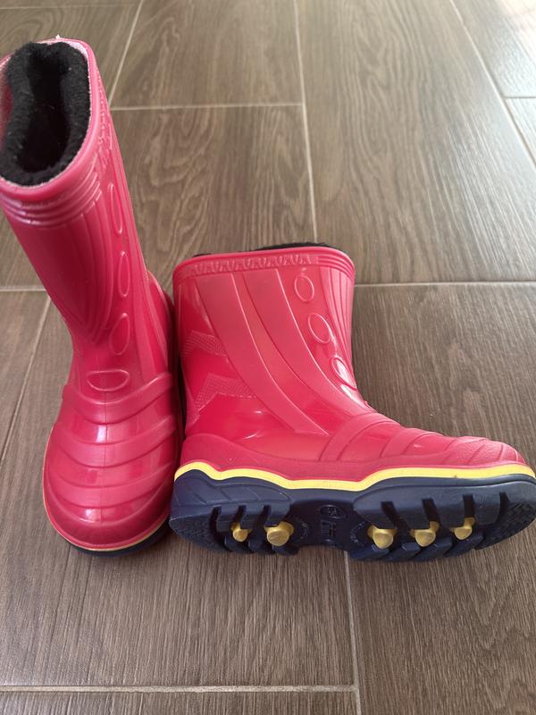 Чоботи в ідеальному стані. Вдягали декілька разів. Чоботи мають устілку з супінатором, а також мають утеплювач, який можна виймати для прання . Також чоботи можна взувати без утеплювача. Розмір 25 ( устілка 15,7 см.) Стан ідеальний, без жодних дефектів. Колір яскраво малиновий ( камера не передає точний колір).