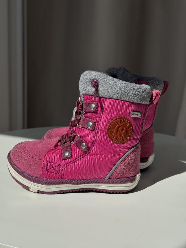 чоботи reima tec для дівчинки 21 розмір. Стан чудовий. Якість відмінна. Легенькі, теплі, дуже зручні. Фактична довжина устілки 13,8.