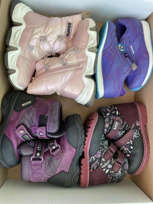 Очень красивая и качественная обувь для девочки, набор из 4х пар разного размера. В DJOY (ортопедические) на носках немного видна легкая потертость верхнего декоративного слоя