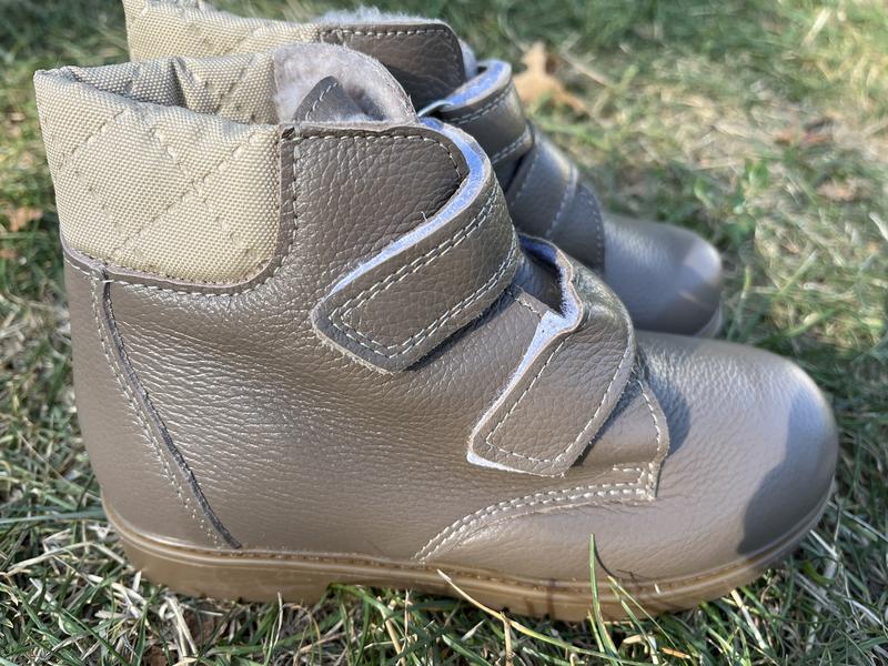 чоботи шкіряні на двох липучках, підкладка хутро , по устілці 20 см каблук 2 см