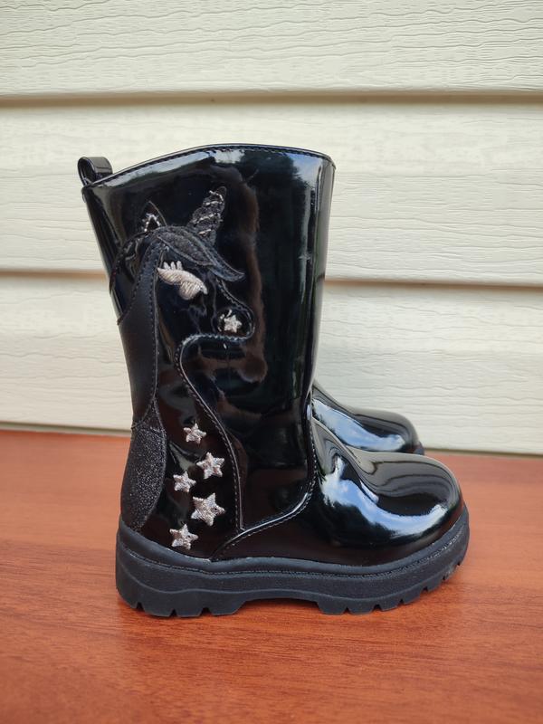 Красивые лаковые сапоги Matalan, стелька от края до края 14 см.