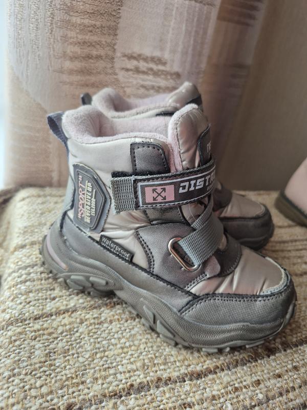 Очень классные, удобные и теплые термо сапожки для девочки! мы носили с удовольствием. состояние хорошее, немножко есть потертости спереди, видно на фото. а так идеальны.