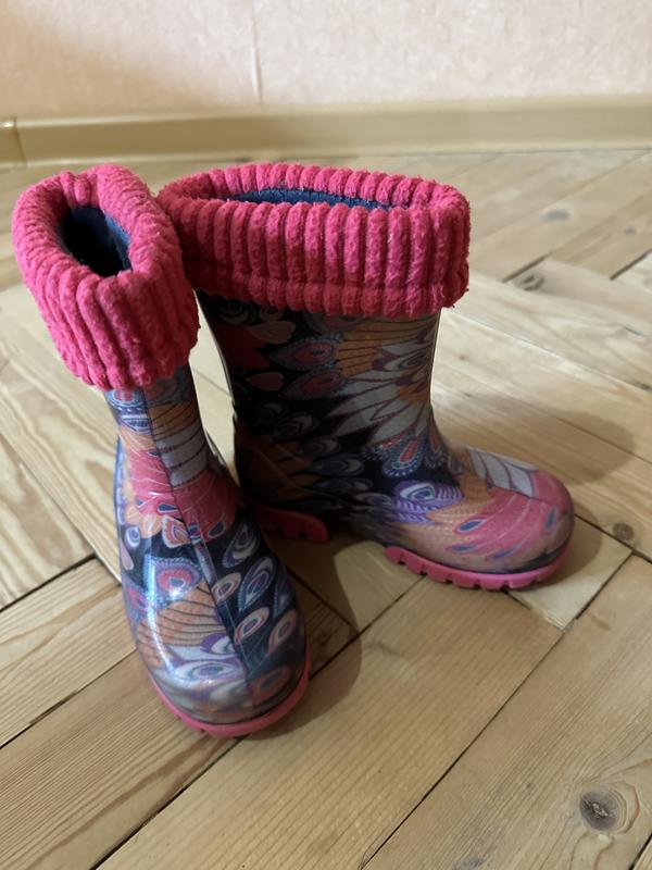 Демар резинові чоботи для дітей, розмір 22/23. В доброму стані. Є підкладка (утеплювач), яка знімається при потребі 16 см заміряла підошву, тому по устілці орієнтовно будуть на 15 см