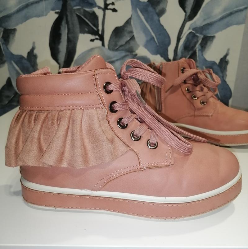 Демисезонные ботиночки на девочку р. 1 длина стельки 20 см, экокожа, незначительные черные линии на правой стороне. Цвет бежево-пудровый.