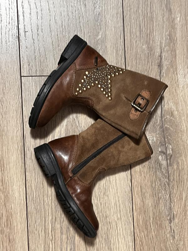 Шкіряні чоботи з легенькою підкладкою утепленою. На блискавках. Ширина халяви регулюються ремінцем. Стан ідеальний