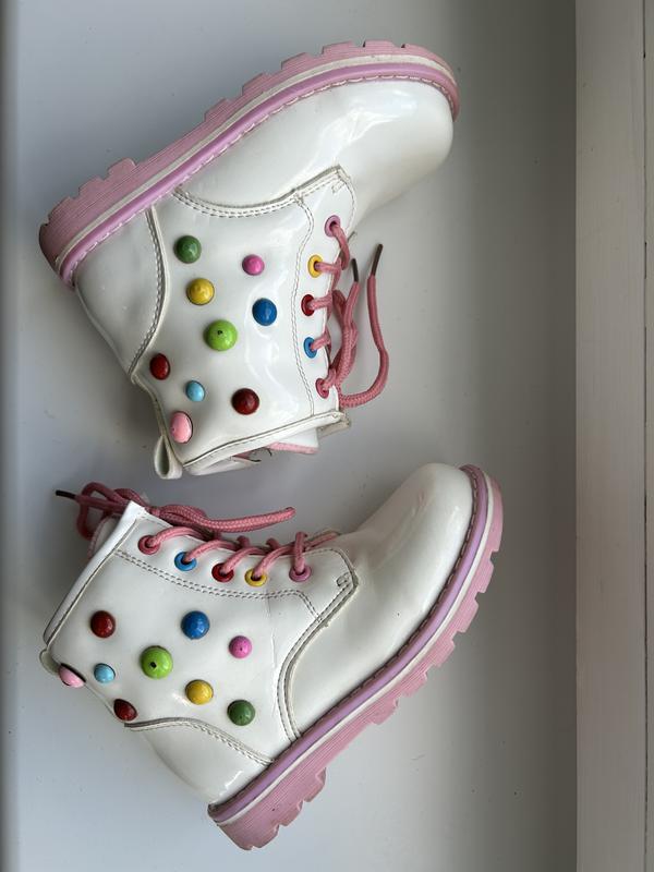 Дивіться інфо у розділі про мене ***** Лаковані чобітки з декоративними кольоровими заклепками на змійці та шнурівці. Демісезон. Розмір 26