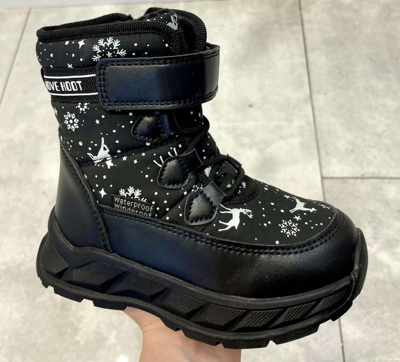 Термо черевики зимові для дівчаток Матеріал верху - водовідштовхувальний текстиль, тканина, що не продується. Мембрана - Waterproof; Windproof , забезпечує вологонепроникність, термоефект. Матеріал підкладки - штучне зносостійке хутро; фліс Устілка - знімна, двошарова, покрита штучним хутром Підошва - морозостійкий термоеластопласт (ТПУ), протектор - антиковзний Країна -виробник - Україна-Китай Розмір 27 - 17,5 см Розмір 28 - 18 см Розмір 29 - 18,5 см Розмір 30 - 19 см Розмір 31 - 20 см Розмір 32 - 20,5 см