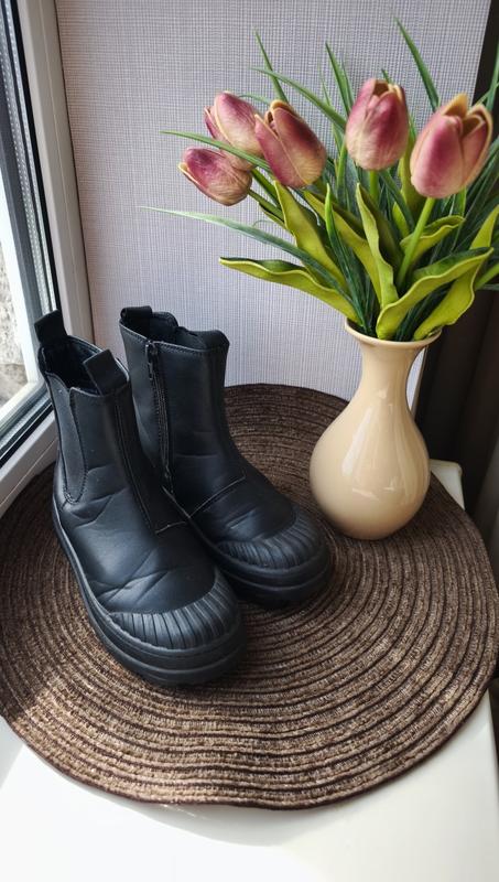 Сапоги в почти идеальном состоянии, есть нюанс с застежкой его видно на фото с низа троха заедает когда застегивается. Сапоги очень удобные, не пропускают воду. Размер 30см для ножки 18см (можно 18,5 но это впритик).