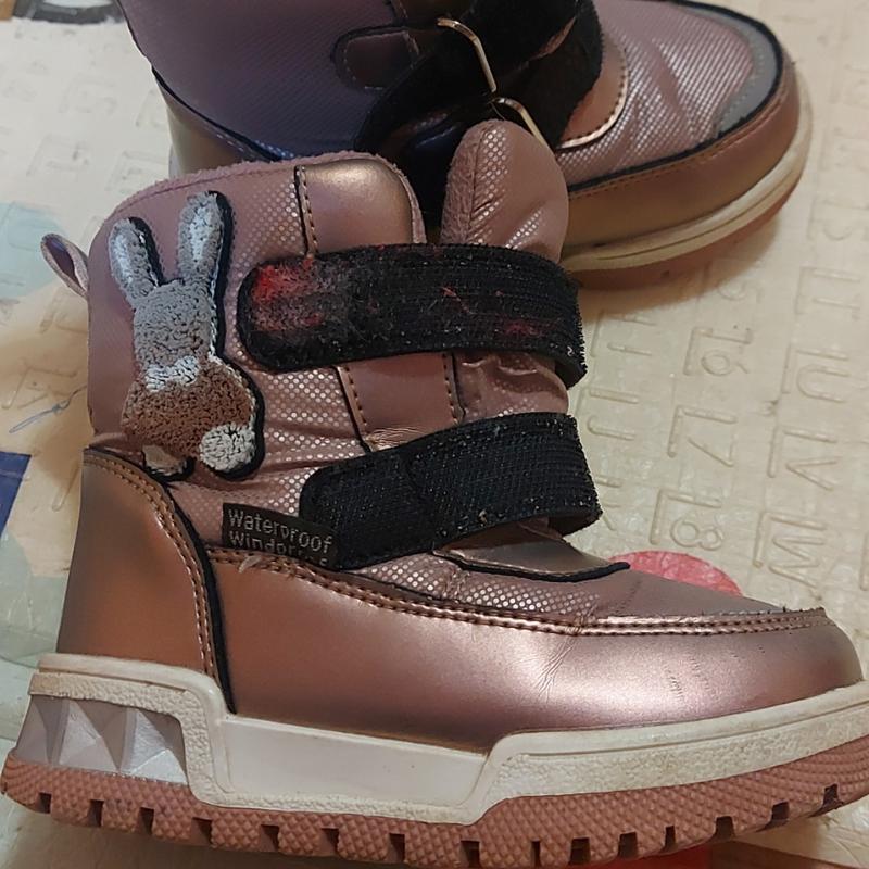 Продам термо сапожки для девочки 25 размер по стельке 16см. Ребенок отходил в них одну зиму, очень довольны, не промокают, ножка всегда теплая была. есть небольшая потертость (видно на фото) и стелька видна, что ношена.