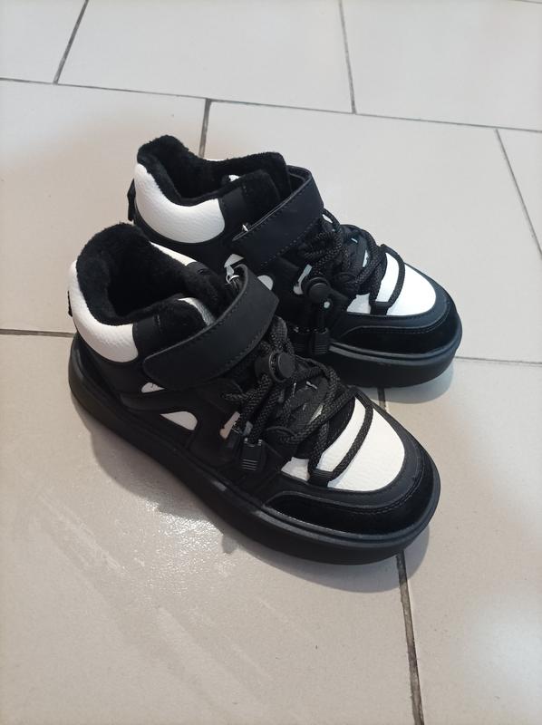 Новые качественные, стильные полусапоги для девочки. Цвет: черный с белыми вставками. Спереди застежка липучка и шнуровка. Сидят красиво.Утеплитель - флис. В наличии: Размер 33, стелька 21.5 см Размер 34, стелька 22 см Размер 35, стелька 23 см Размер 36, стелька 23.5 см Размер 37, стелька 24 см Размер 38, стелька 25 см Доставка : Нова пошта Укрпошта