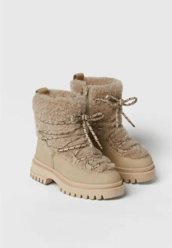 Ботинки со вставками тедди от zara бежевого цвета 33 размер