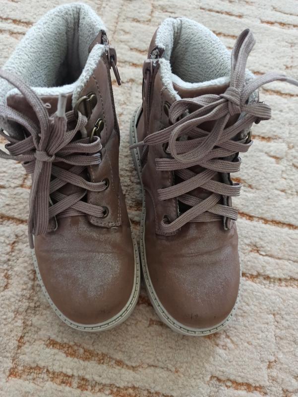 Обувь возможно на девочку и на мальчика. Демисезон или на теплую зиму. Цвет какао украшен серебристым слоем. Выполнены качественно, фурнитура работает. Подошва плотная.