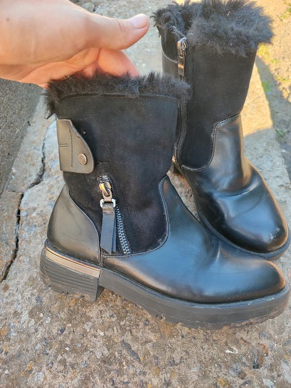 сапожки зимние для девочки 35 размер в хорошем состоянии. застежка на молнию. внутри очень густой мех, не взбитый. теплые. с недостатков - отсутствуют две кнопки на шлевках и чуточку взбиты носки, на функциональность не влияет