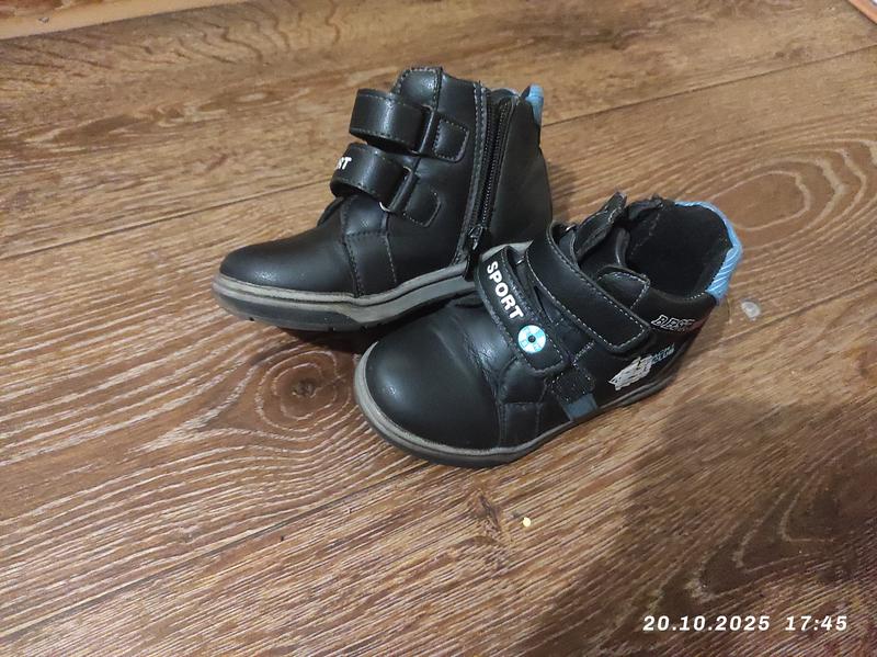 Ботинки на 4, есть пару небольших зацепок, при носке не заметно,внутри флис, стелька не вынемается,примерно 17см, по подошве 19см. Молнии и липучки отличные.