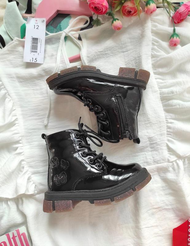 Детские ботинки демисезон под лак с тракторной подошвой на шнуровке Имеет застежку молнию Размер 25-26