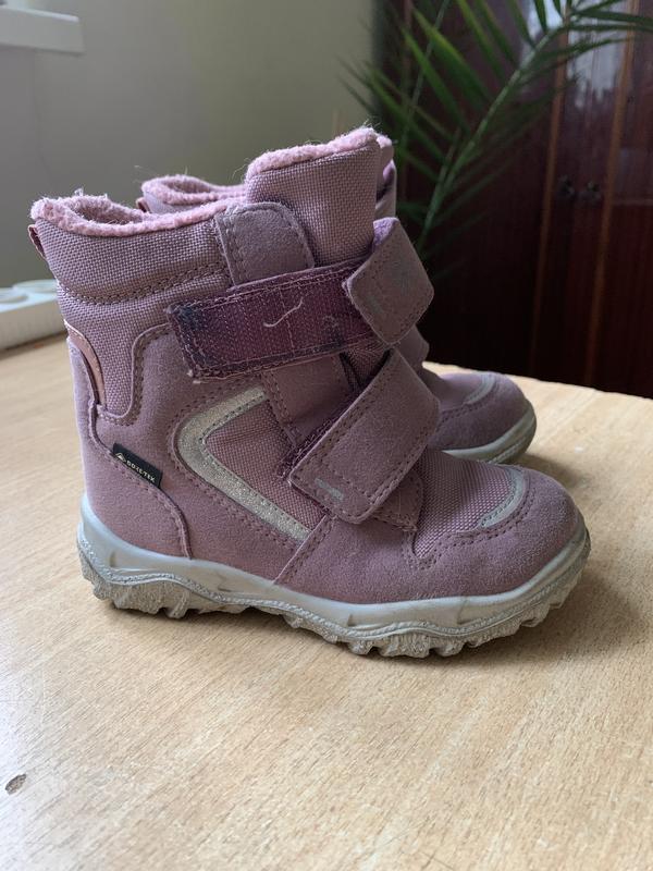 Зимові чобітки Superfit, довжина устілки 15,5 см. Всередині утеплені, завдяки мембрані не промокають. Підійде на невисокий підйом, на температуру -10…+10 градусів. У дуже хорошому стані, на фото
