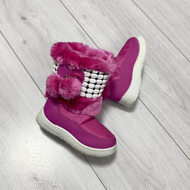 Зимові дитячі чоботи виробник Угорщина т.м CSCK.S якісні, зручні, дуже теплі, добротна підошва, взуття легке з боку є блискавка, тканина не полоскає має пропитку ,акуратно виглядають на ніжці. Верх: тканина з просоченням Усередині: штучне набите хутро Виробник Угорщина Колір малиновий 25р-15см 27р-16см