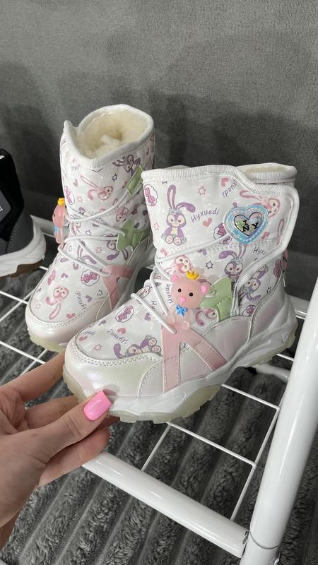 💕🎀 Дутики Зайка, зима 🥶❄️. Утеплені овчиною. Верх - балона, еко шкіра. Застібка - липучка. Підошва - ПВХ. Устілка - овчина. 📐Заміри: 22 - 14,7 23 - 14,9 24 - 15,8 25 - 16 26 - 17,2 27 - 18