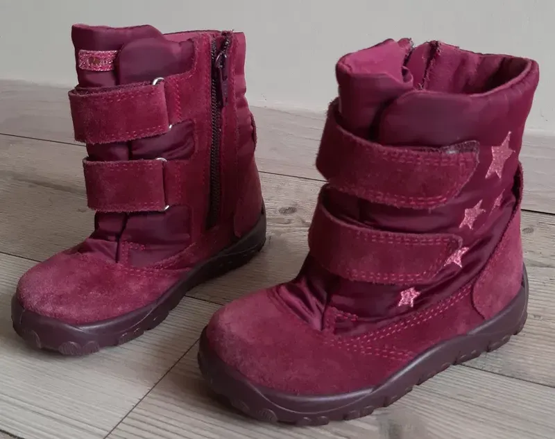 Сапоги легкие, симпатичные, брендовые, качественные и теплые. Отличное состояние. Материал: натуральная кожа (замша), специальный, водоотталкивающий текстиль. Мембрана Elefanten-tex !!! Защелка: молния сбоку, две прочные липучки. Внутри утеплены мехом. Полиуретановая рифленая подошва, не скатывает. Стелька 15 см. Размер 23 Полностью соответствуют фото!
