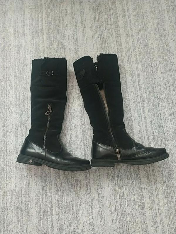 Сапожки для девочки в идеальном состоянии, натуральная кожа и замш, на овчинке, длина голенка регулируется