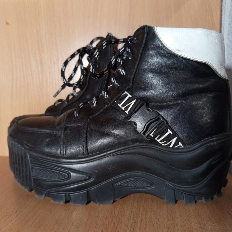 Качественные зимние ботинки на прочной подошве, изготовлены из натуральной кожи. Подошва не скользкая. Очень удобны и практичны, для повседневной ходьбы просто отличный вариант. Выглядят стильно и аккуратно. Сзади украшены кожаной белой вставкой. Модель фиксируется шнурками, сбоку - молния. Внутри утепленные набивной шерстью. Высота ботинка -11 см Высота подошвы - 5 см Размерная сетка - длина стельки: Размер - 36 - 22.5 см