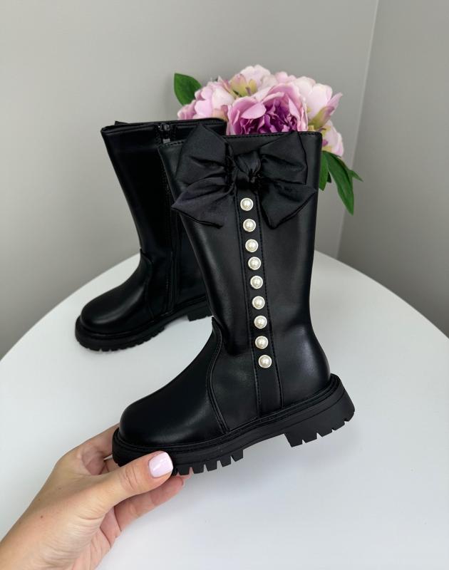 Акция деми сапожки для девочки черный цвет жемчужинки черный бант цвет черный