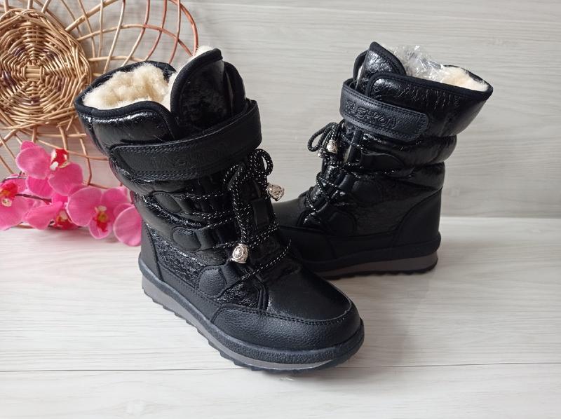 зимние ботинки тепленькие и удобные верх-эко кожа, рабочая шнуровка, липучка и замок, весьма удобно надевать детям в середине густой мех (60 процентов натуральный) цвет черный Рекомендуем замеры в середине р37-стелька 23 см- 1 шт похибка +-2 мм
