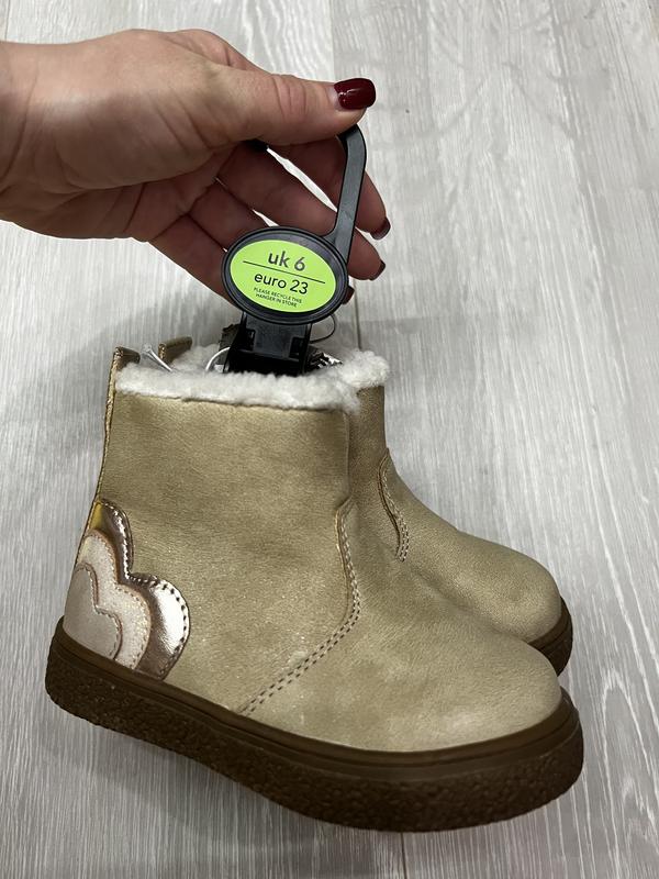 Дуже зручні чоботи, на застібці, щільне штучне хутро. Гарні, бежевого кольору, на фото може відрізнятися трохи відрізнятися. Довжина устілки 13-13,5 см