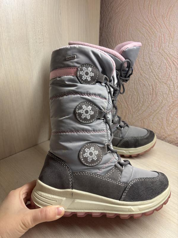 Продам зимние термо сапожки Twisty 36 размер. Но по мне лучше подойдут на 35 размер. Б/у, но общее состояние отлично, такие как на фото. Внешне натуральный замш и мембрана tex, серединка искусственный мех. Серединка не збита. Теплые и красиво выдерживают влагу. Длина стельки 23 см. Подойдут на узкую и среднюю ножку. Сезон зима, холодная весна, осень.