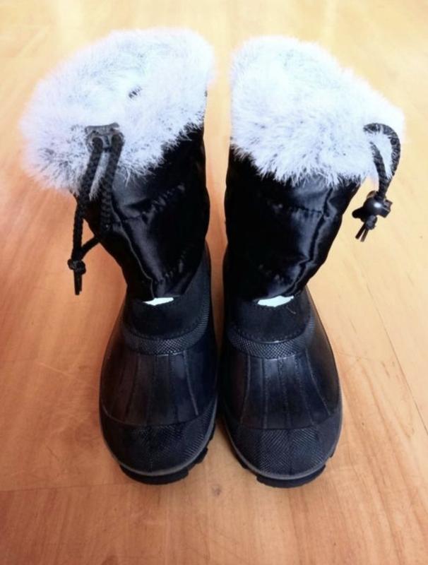 Качественные новые зимние сапоги. Размер 33. Водонекпроницаемые. Утепленные. Сверху утягиваются при необходимости по форме ножки благодаря специальной шнуровке. Имеют светоотражающие наклейки спереди и сзади. Прочная подошва имеет хорошее сцепление с поверхностью. Легкие, теплые и удобные.