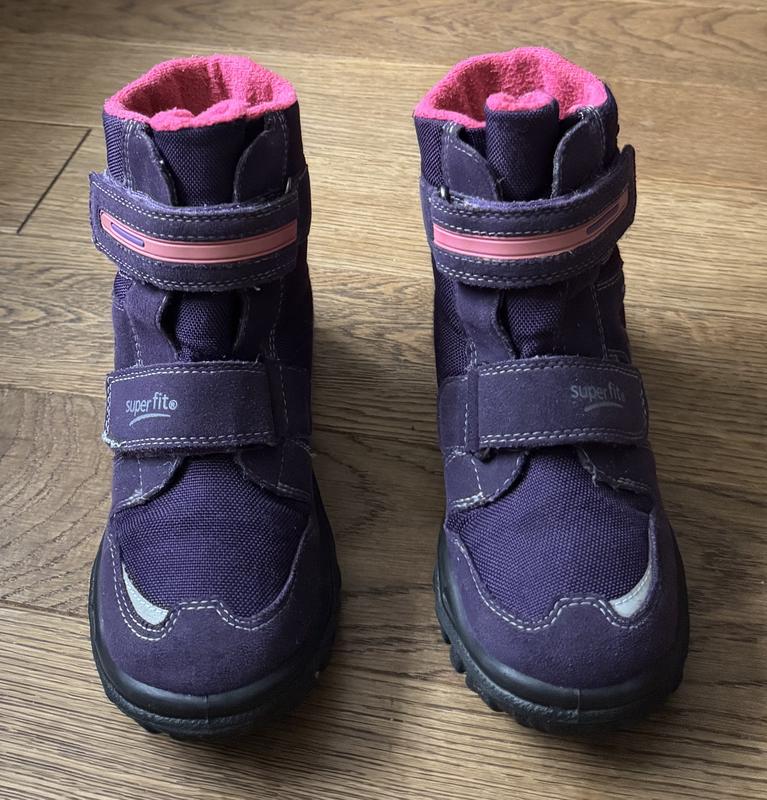 Зимові чоботи австрійського бренду Superfit розмір 31, устілка фетр від краю до краю 20 см(є фото). Моделька легка, гнучка, тепла, мембрана Gore-Tex, не промокають. Повнота середня. На двох міцних липучках. Стан чудовий!
