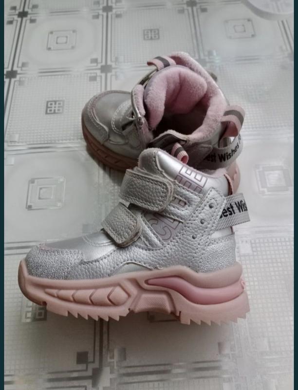 Зимние ботиночки для девочки Польскокого производителя Clibee, очень теплые и удобные.. 21 размер, но идут на 23 размер, стелька имеет - 14,5 см. Застегивается на липучки и молнию, подкладка емкость овчины. На ножках смотрятся стильно и аккуратно. Кожаные. Купила в магазине за 1100. Носили мало. В основном ребенок сидит в коляске. Размер 23. По стельке 14.5 сантиметров.