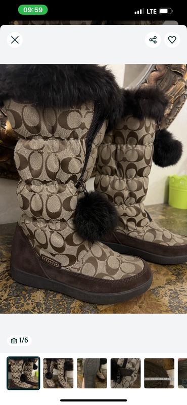 COACH • утеплені чобітки Розмір: 35-35,5 (US 5B) Вдягалися всього кілька разів — стан майже новий. Стильна модель з фронтальною блискавкою та оздобленням з натурального хутра кролика. Дуже зручні, теплі та при цьому легкі.