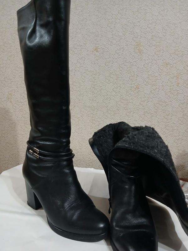 Продаю чорні зимові чоботи 38 розмір Натуральна шкіра,штучне хутро по всій довжині