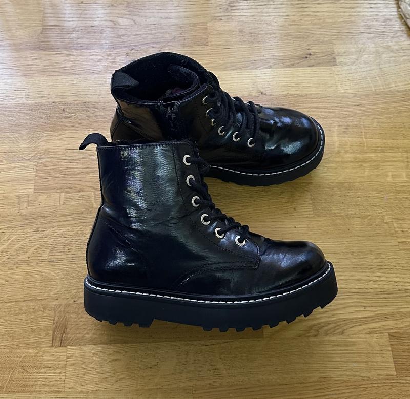 Чобітки Hm 33р(21чс) вологонепроникні, утеплені хутром, мають замочок з боку, стан дуже гарний.