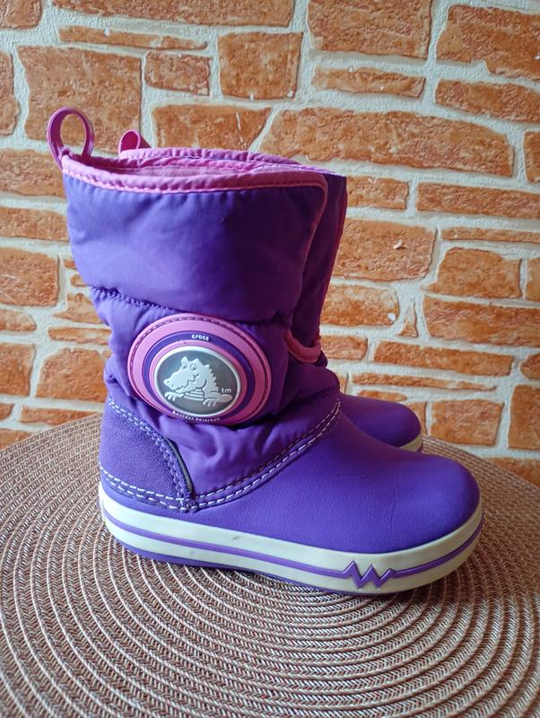 отличные удобные сапожки известного бренда для девочки, при ходьбе с внешней стороны горят огоньки, также горит огоньками наклейка с изображением крокодила