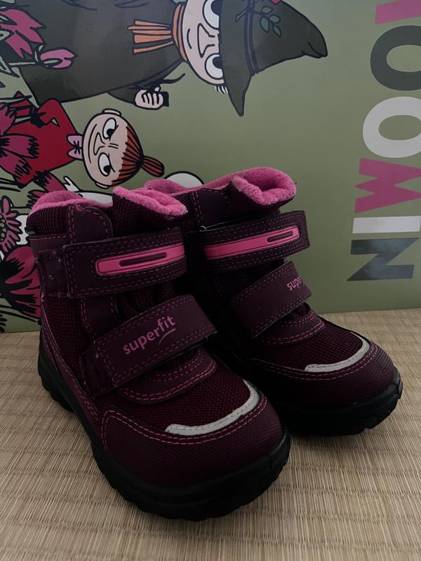 Чудові зимові чобітки. Міцна підошва, що не ковзає, утеплені вовною, є дві липучки. В носці майже не були, без дефектів. Устілка 16,8 см.