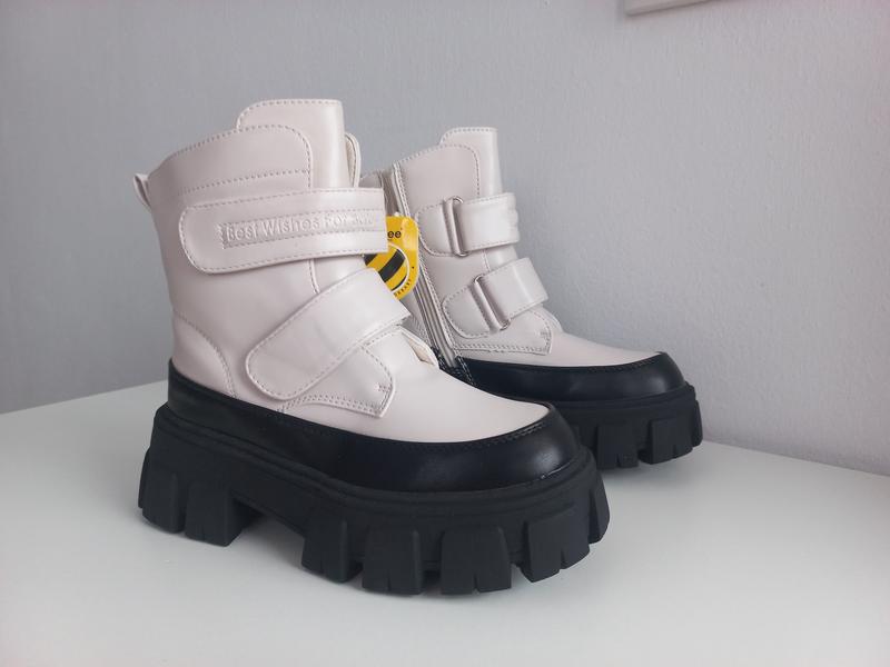 Ботинки детские девичьи Clibee Цвет: беж с черным Материал: экокожа, овчинка, полиуретан, резина На замке и лепучках, регулируется полнота. Размер: 32, 33, 34, 35, 36, 37 замеры впритик от края до края стельки 32р.(21,5см) 33р.(22см) 34р.(22,5см) 35р.(23см) 36р.(23,5см) 37р.(24см) Отправка в течение 1-3 дней