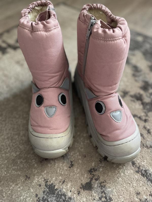 Сапожки фірми Bartex. Дуже якісні . Знизу(сіре це гума) наповнювач овчина . В ідеальному стані , все ціле . Тільки де сіре видно сліди носки . Можливо відмиваються не пробувала. Там де тканина -ідеальний стан Устілка 21-21,3 см
