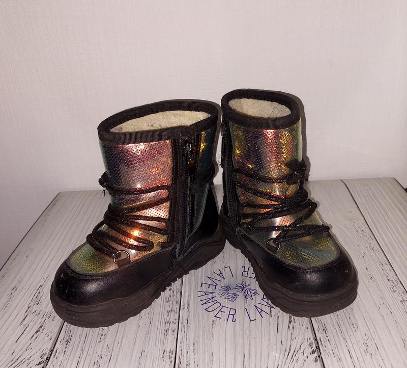 Очень прочные и добротные сапоги на меху, не промокают, не скользкая, на молнии. Размер 25. Длина подошвы 14 см