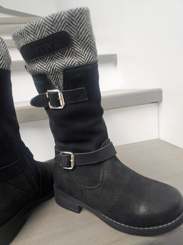 Сапожки из натуральной кожи-нубук, прошитые по подошве, внутри овчинка, сбоку замок. Обувь изготовлена из натуральных материалов украинской фабрики Bistfor, это безупречное качество! Размеры и длина по стельке : 32-21см, 33-21.5см, 38-24.5см
